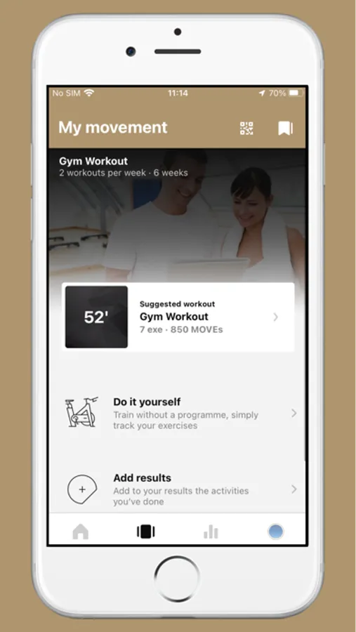 Een virtuele coach die u begeleidt tijdens uw training: Kies eenvoudig de training die u wilt doen in de Mijn beweging pagina en laat de app u begeleiden tijdens uw training. De app gaat automatisch naar de volgende oefening en geeft de mogelijkheid om uw training een waardering te geven en een volgende training in te plannen.