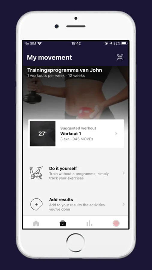 Mijn beweging: Hier vind je jouw trainingsprogramma, activiteiten binnen de club en leuke challenges! Ook zie je wat je in vorige trainingen hebt bereikt.