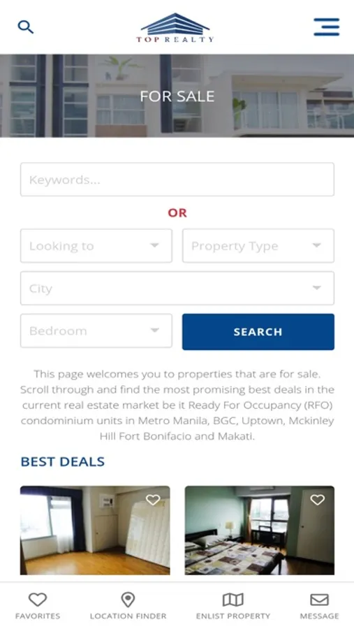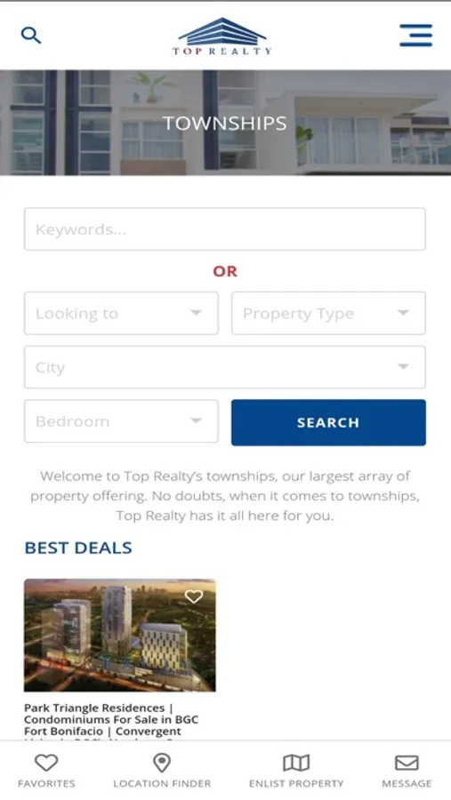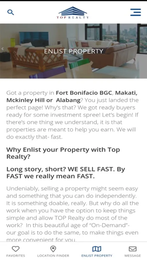 Top Realty Corporation (TRC) is a multi-awarded brokerage firm based in Bonifacio Global City. We specialize in helping our clients buy, sell, lease out and enlist properties. Top Realty pools together the expertise of our seasoned professionals all working towards delivering results to our clients.