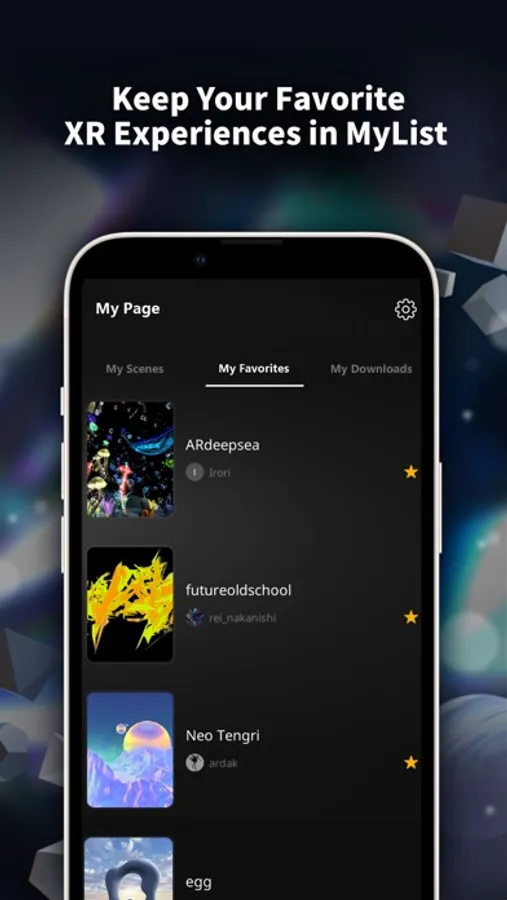 Explore AR/VR content from all over the world and create your own original list by registering your favorite works in My List.