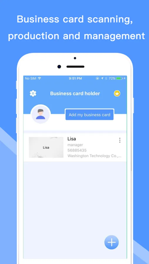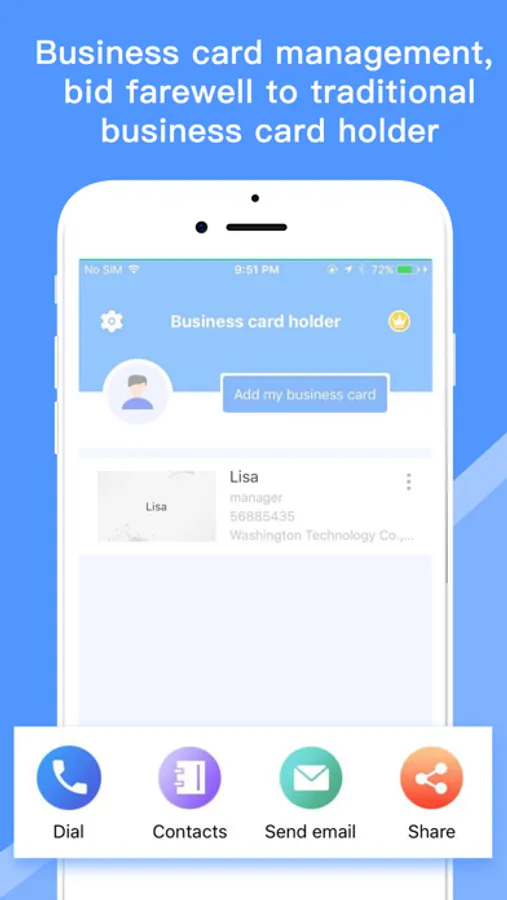The business card holder APP can realize fast dialing, emailing and business card sharing. You only save it, and the other one is handed over to me!