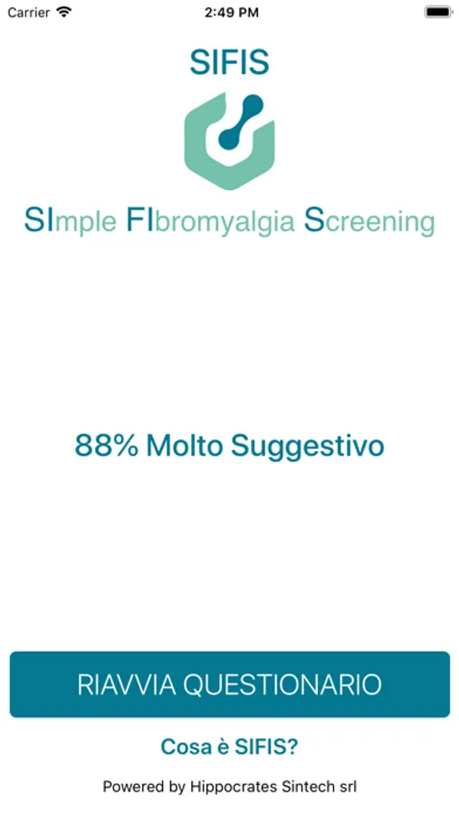 Il SIFIS – SImple FIbromyalgia Screening questionnaire, si propone come un valido strumento di screening, di semplice utilizzo nella pratica ambulatoriale e di sicura utilita’ negli studi epidemiologici. Le diverse tappe dello sviluppo del SIFIS hanno comportato: (1) l’identificazione di una popolazione specifica di pazienti, (2) lo sviluppo e la selezione di una serie numerosa di item, (3) la semplificazione del numero degli item, e (4) lo studio finale di validazione dello strumento, condotto su 230 pazienti con fibromialgia. Sensibilità, specificità, valori predittivi positivi, rapporti di verosimiglianza (LR+ e LR-) e probabilità post-test dei 6 item identificati, sono stati determinati allo scopo di studiare la migliore combinazione possibile. Il valore di LR+ dei 6 item è risultato compreso fra 3.37 e 5.00. La verifica della probabilità post-test è stata indagata mediante la formula di Bayes (o teorema di Bayes o teorema della probabilità delle cause) e l’algoritmo matematico è stato implementato nell’applicazione.