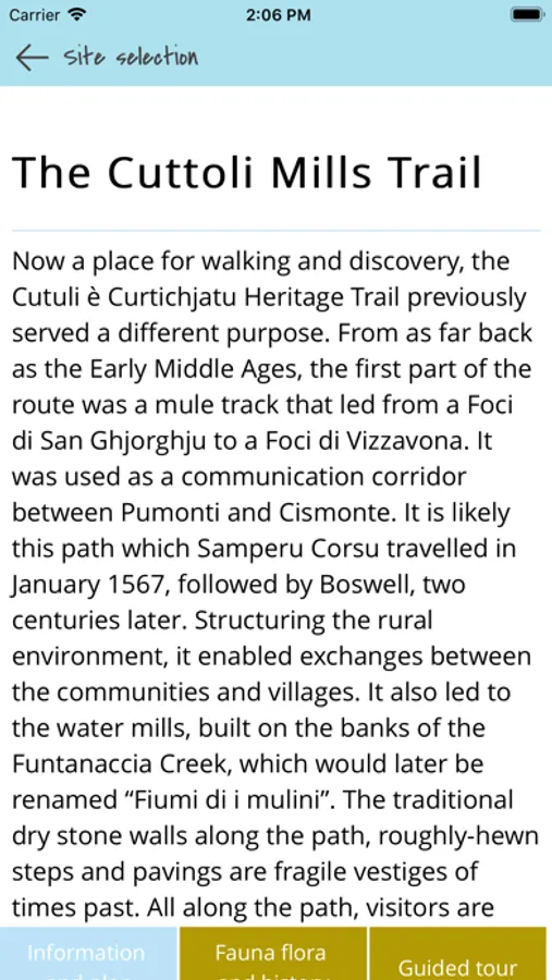 L'application mobile "CAPA SCOPRE" est un guide interactif qui permet de ne plus rien ignorer de la richesse des chemins de randonnée du Pays Ajaccien. Depuis n'importe quel endroit du globe, ou bien, directement lors de la randonnée, l'usager dispose de contenus textuels, photographiques, vidéos et sonores permettant de découvrir la faune, la flore et l'histoire patrimoniale de ces sentiers. Grâce à l'implantation de capteurs bluetooth directement sur les sentiers, ces contenus sont même proposés automatiquement au fur et à mesure de l'avancée de l'usager sur son parcours.