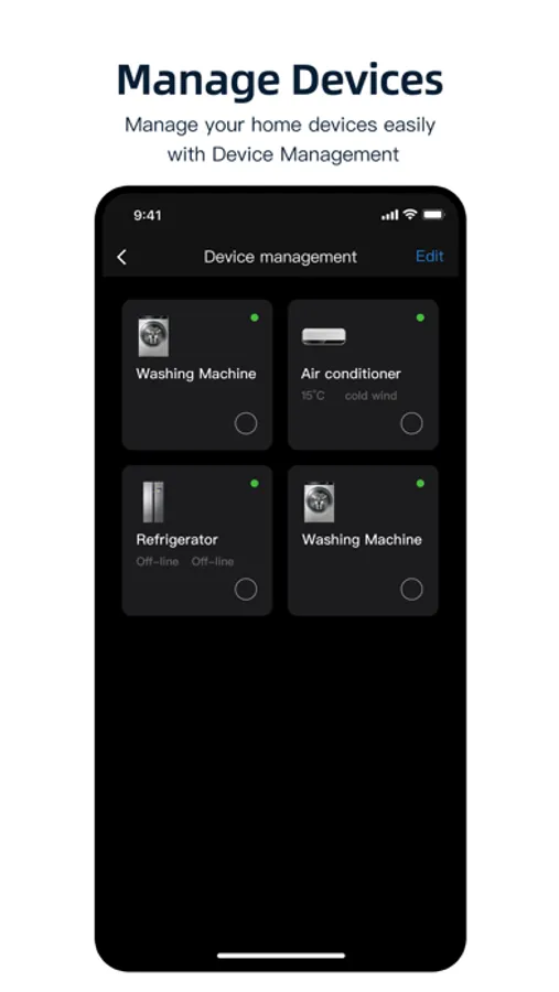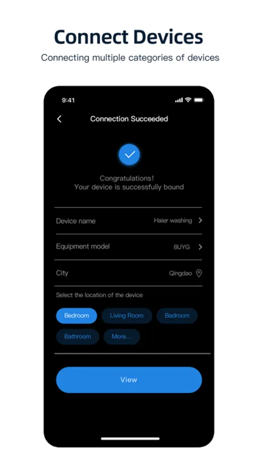 You can manage your smart appliances online anytime and anywhere. It accesses to smart appliances binding and status view and other functions.