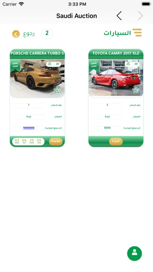 انواع المزادات و نسب استحقاق الشركة و قيمة التامين على المزاد