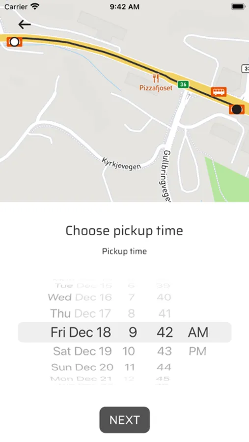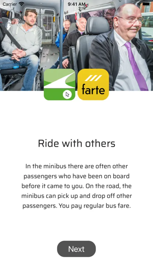 Du bestiller transport i appen, følger med på når minibussen er ventet til deg eller din holdeplass, og du går om bord for å reise til valgt destinasjon.