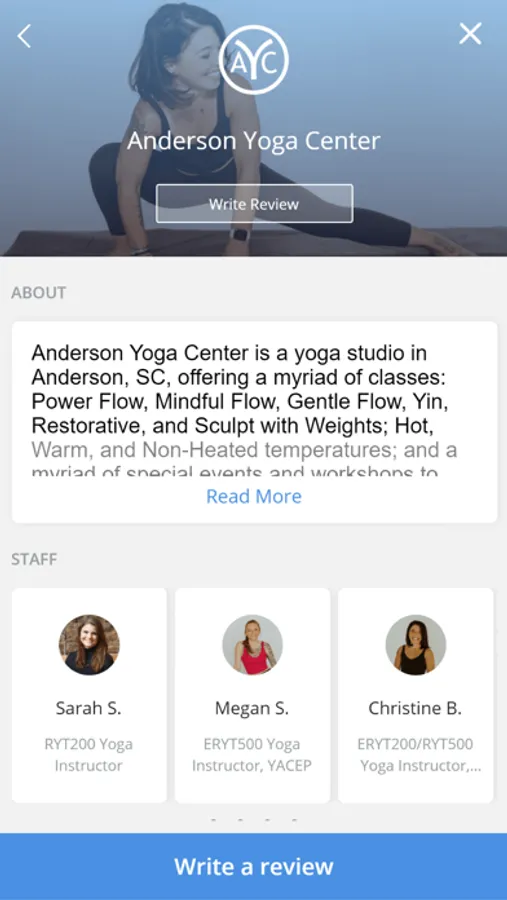 Download this app to view schedules & book sessions at Anderson Yoga Center!