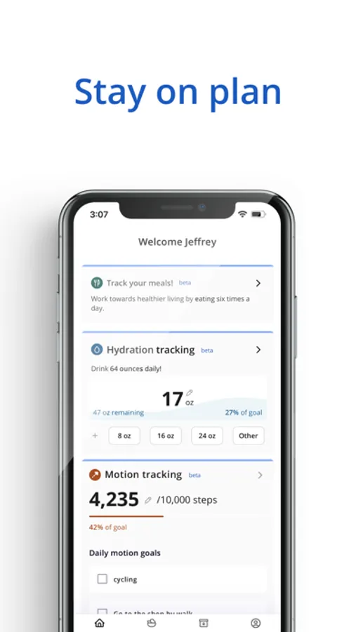 • Wellness Profile: Immerse yourself in your health objectives through a tailored wellness profile. Shape your journey with bespoke insights and recommendations that align seamlessly with your aspirations.