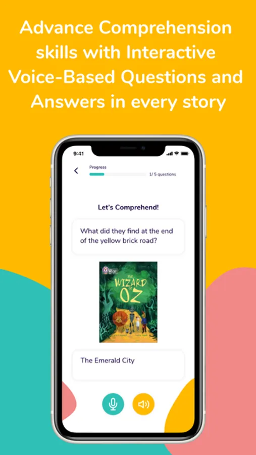 Our industry-first comprehension with Interactive Voice-based Questions & Answers (IVQA™) asks your child questions verbally about the story they just read to improve their critical thinking skills. Your child then is prompted to answer the question verbally to ensure they fully understand what they read. Comprehension is as important as reading fluency, we deliver both in our smart reading app for kids.