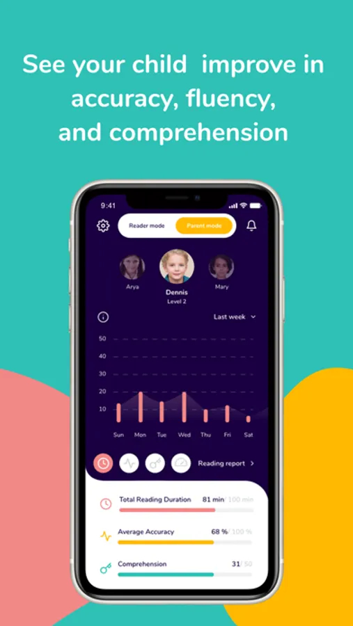 Set goals and follow your child’s progress with your very own Parent Dashboard detailing what they have read, reading duration, accuracy, comprehension, and speed. It also provides daily and weekly reading reports for accountability that can be shared with a teacher.