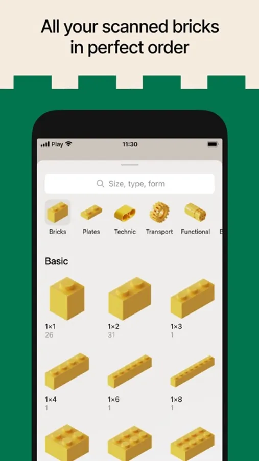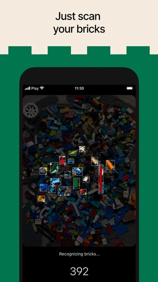 1. Spread out your bricks and take a photo of them. The app will scan the photo, identifying and counting details on it.