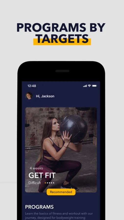 The app offers various workout plans based on your fitness level and targets.