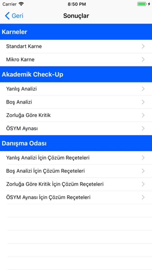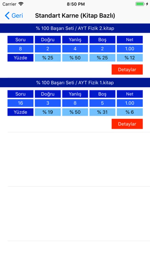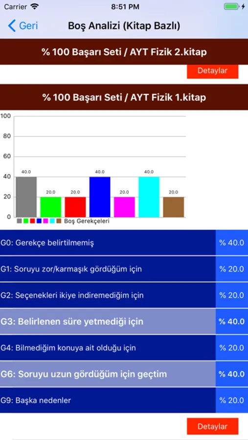 ÖSYM ayarındaki soruların analizlerini, kitap/ünite/test bazlı olarak alabilirsiniz.