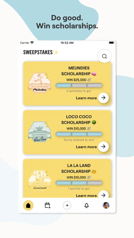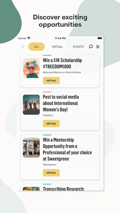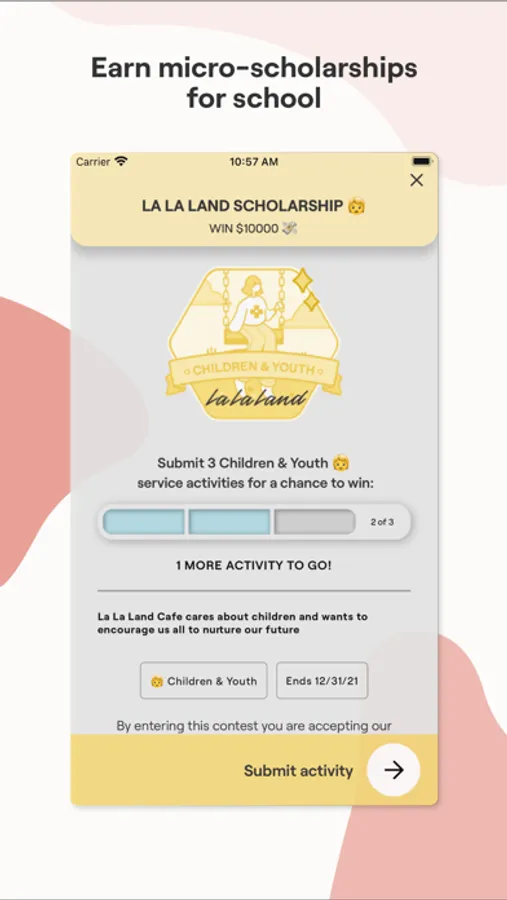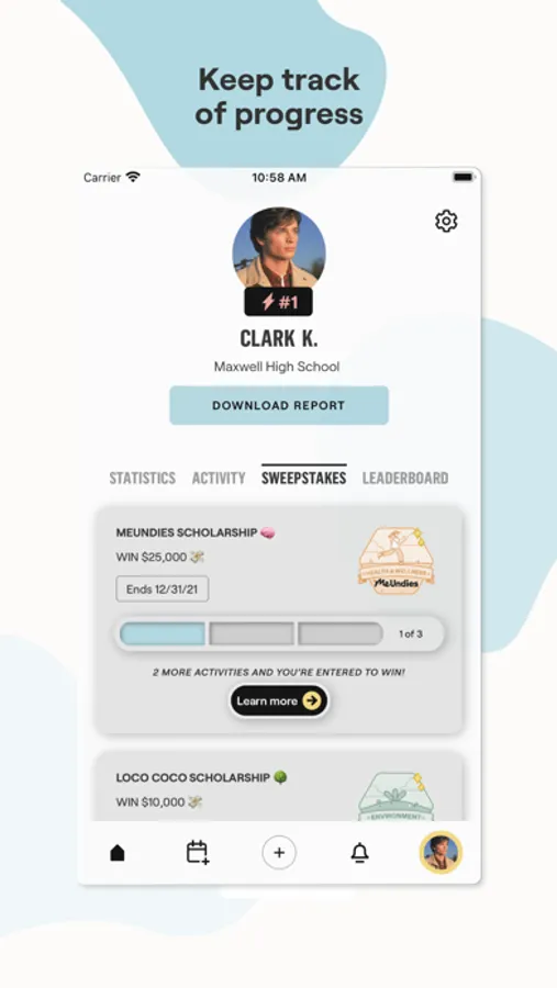 Choose from opportunities listed on our platform or submit your own activities and set yourself up for success with scholarship dollars won each month.