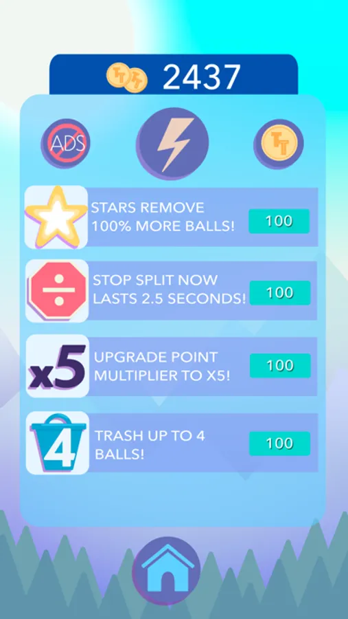 Tap powerups to help you manage the balls while you increase your score. The more coins you collect the better power-ups you’ll be able to purchase. All power-ups will become stronger when you upgrade them in the store, helping you reach new high scores!