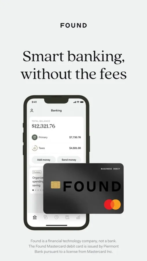 Found is a financial technology company, not a bank. Banking services are provided by Piermont Bank, Member FDIC. The Found Mastercard® debit card is issued by Piermont Bank pursuant to a license from Mastercard Inc.