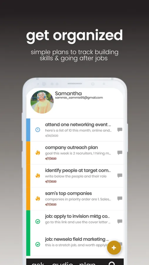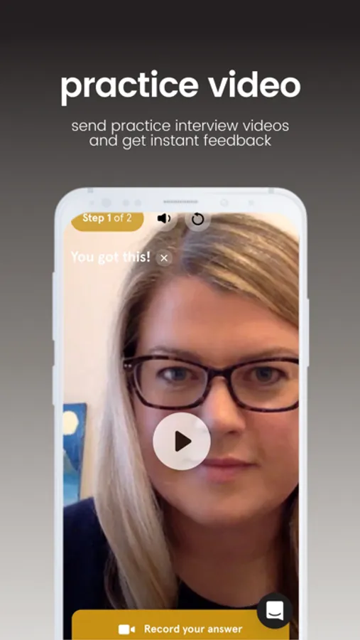 Video interview coming up? Or just getting ready? Through the app, we’ll ask you a few video interview questions, you send in your short practice video answers and we’ll send you expert feedback right away.