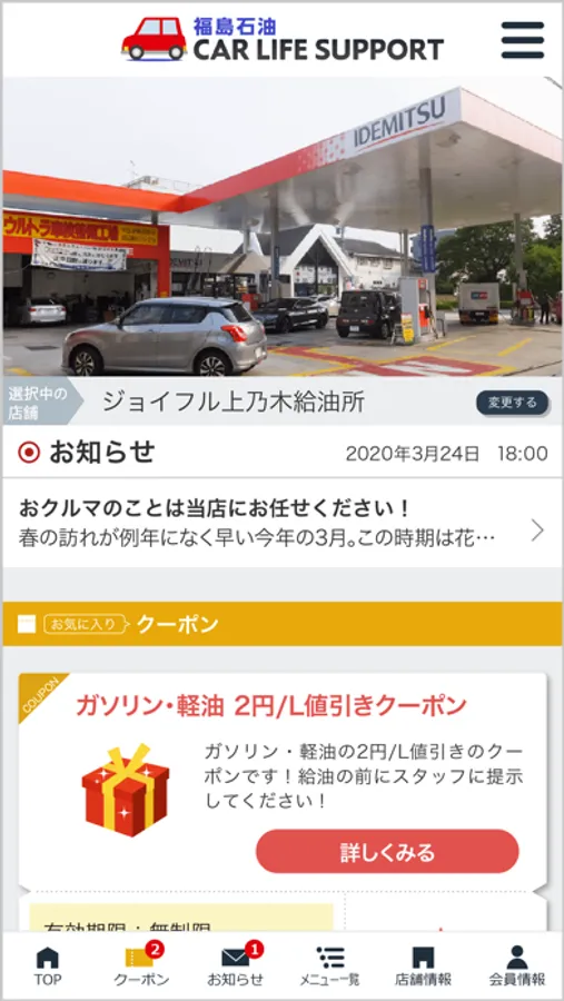 愛車のトータルサポートなら株式会社福島石油のアプリ「CAR LIFE SUPPORT福島石油」にお任せ下さい!