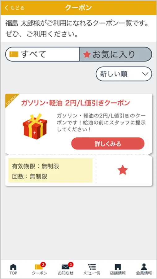 当社のアプリ「CAR LIFE SUPPORT福島石油」ではアプリで簡単に洗車・コーティングなどのご予約や愛車のメンテナンス管理が可能の他、ご登録いただいた店舗で利用いただけるお得なクーポンや各種メニューの割引情報を配信しております。