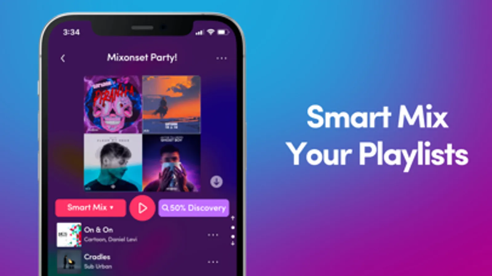 Making a mix with your own music has never been easier. Simply sync with your streaming service, press Smart Mix® and vibe out to your personal mix. Mixonset works with Spotify Premium, SoundCloud Free, TIDAL, Apple Music or your local library, and on Apple CarPlay.