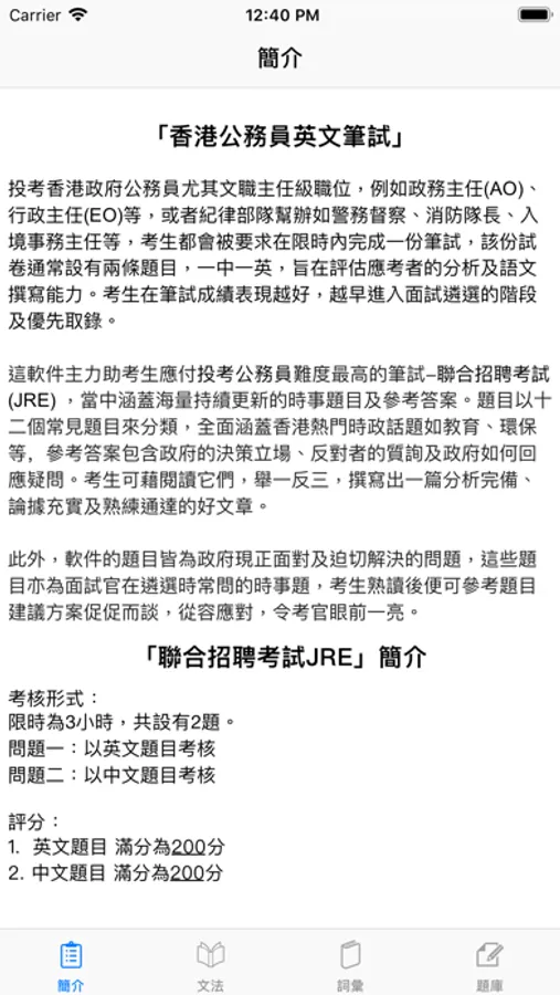 軟件的題目皆為政府現正面對及迫切解決的問題,這些題目亦為面試官在遴選時常問的時事題,考生熟讀後便可參考題目建議方案促促而談,從容應對,令考官眼前一亮。題目持續更新。