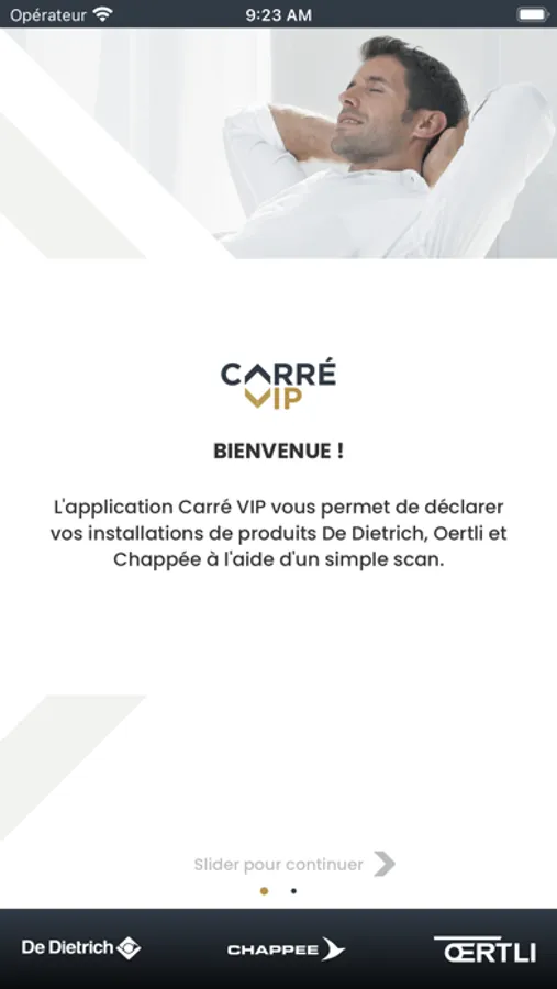 Application gratuite et exclusive aux installateurs du programme Carré VIP regroupant les marques du groupe BDR Thermea Chappée, De Dietrich et Oertli.