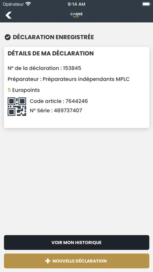 Avec l'application Carré VIP, la déclaration de vos achats devient :