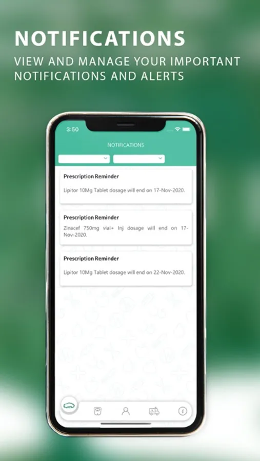 • Notifications: Receive notifications about general announcements and your upcoming appointments and prescription reminders.