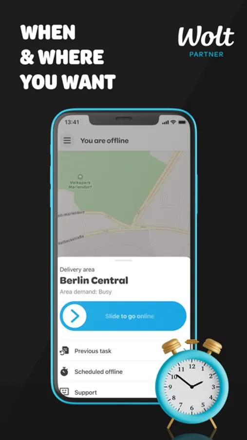 Deliver in the evenings, for a few hours during lunches – or whenever you feel like it. The app makes your life with Wolt easy. It gives you clear live updates on where you can pick up your next deliveries and how much money you’ve earned.