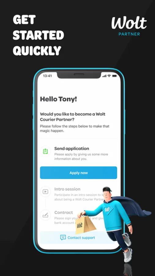As a Wolt Courier Partner, you earn money by delivering food & more from local businesses to people’s homes. Choose your own hours and enjoy the freedom!