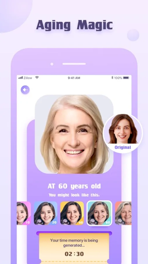 -Take the express train of time and travel through the light years. You can choose to return to your youth, or you can see what you will look like decades later. Adjust your current state and become a better version of yourself!