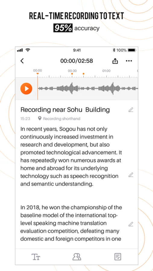 When connected with the Sogou Recording Pen, supports recording to text transcription and file saving.Record first and transcribe later. When not connected, it supports recording alone, but once reconnected, it transfers the recording files to the APP and converts them to text and saves.