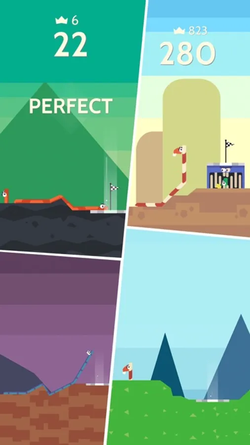 Tap and hold to stretch your snake, let go and watch it bend itself to match the road.