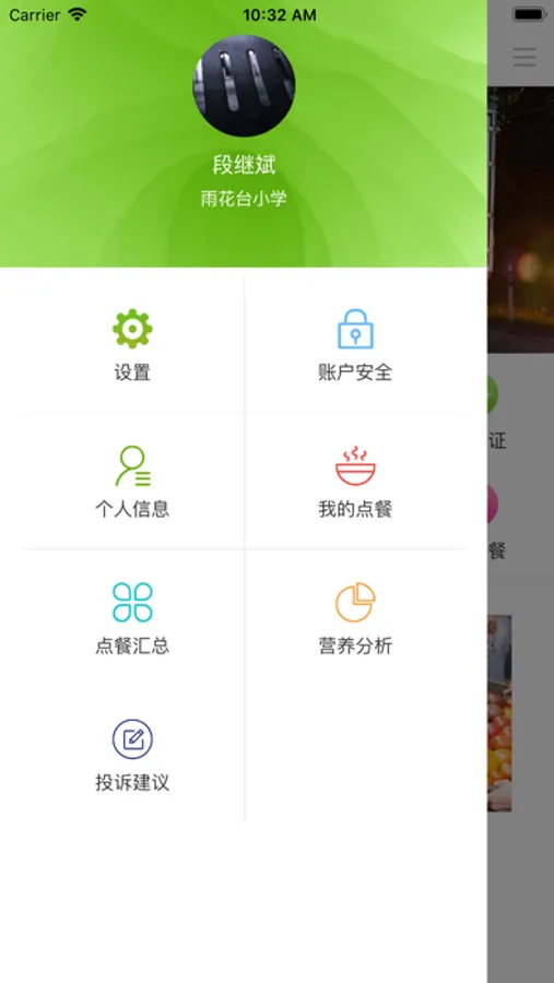 1、学生或学生家长登陆App后可以选择下周的午餐品种。