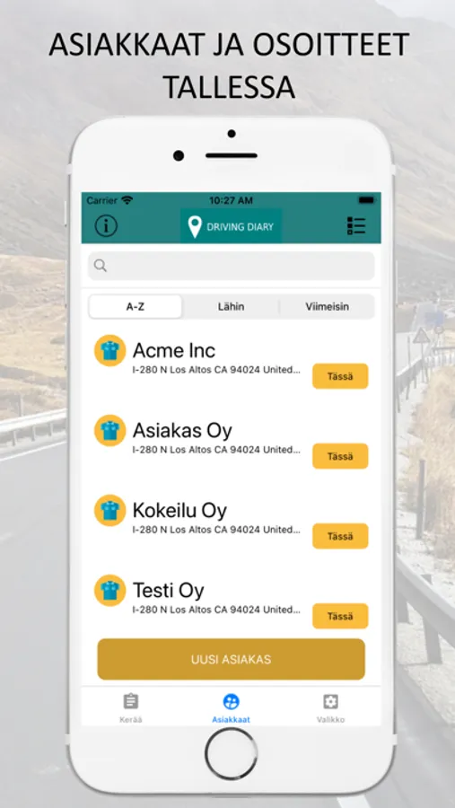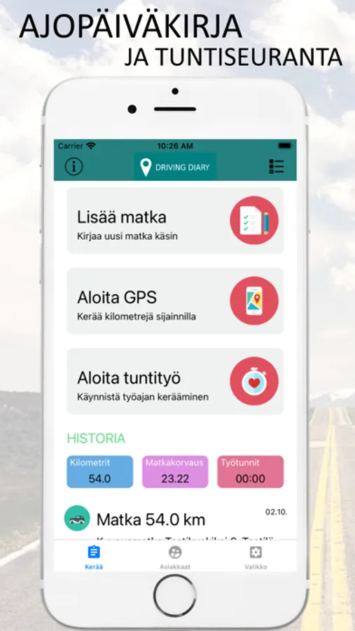 Driving Diary -ajopäiväkirja on työmatkojen seurantaan tarkoitettu helppo ohjelma. GPS-seurannan avulla keräät kilometrit ja osoitteet vaivatta. Ohjelma on suunnattu kaikille, jotka seuraavat ajomatkojaan.