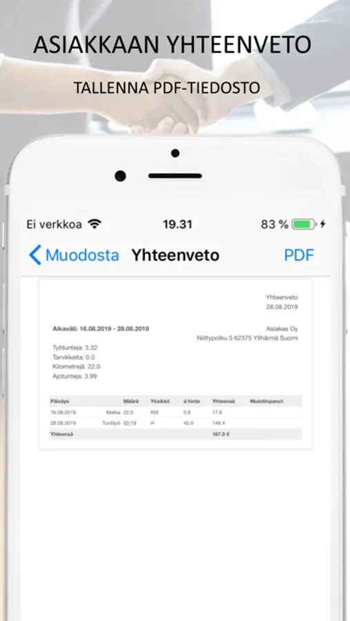 * Asiakkaan yhteenveto PDF-tiedostoksi