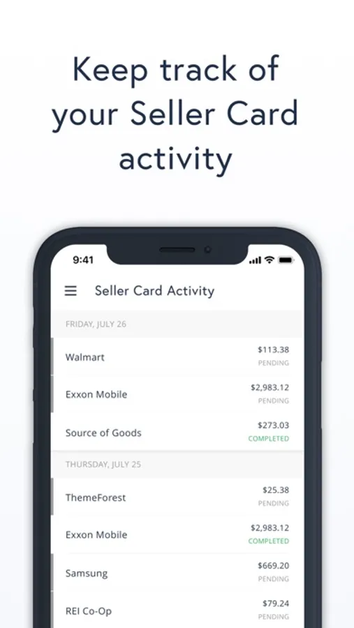 • Easily track and review your completed Payability Seller Card transactions, pending transfer requests, and pending card transactions all in one place