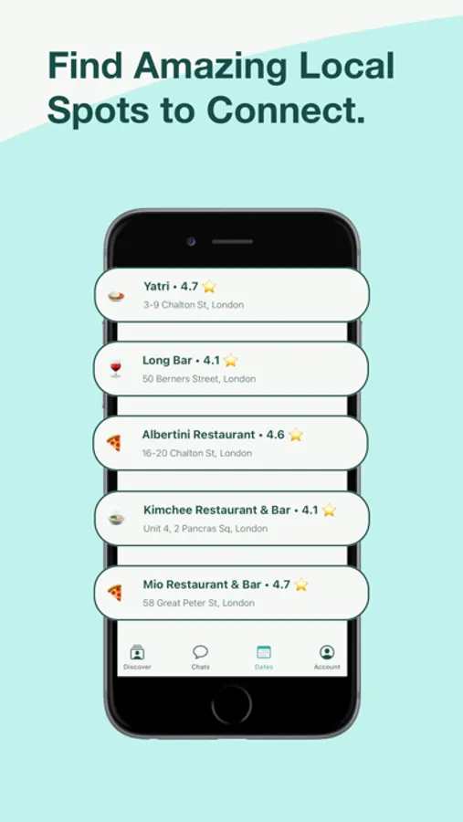 Imagine this: You're free on a Friday night and craving pizza. With Noon Happen, when you start chatting with someone, we'll suggest the best Italian restaurants nearby for your date. Say goodbye to the hassle of searching for the perfect spot - we've got you covered!