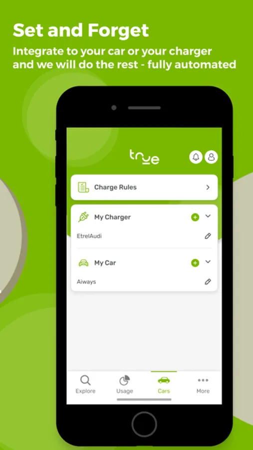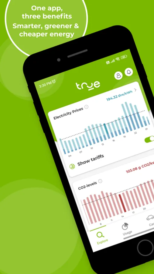 The True Energy App is an app to Smart Charge your EV. Via the app, you can automate your charging, via charging rules, so you can have different ready-times whether it is weekdays or weekends. In addition to controlling your car, you can also control your Smart Home via the integration with IFTTT. Then you can set the washing machine to run when the power is cheapest and most climatefriendly.
