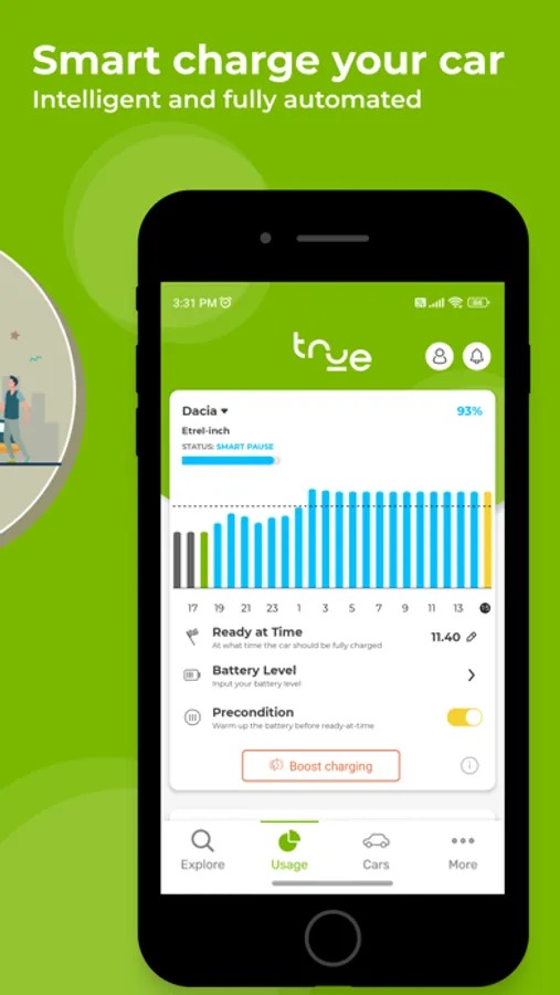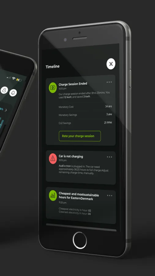 If you own an electric car, then you have the option to add it to the app, set when you want the car to be ready in the morning, and then the app will automatically charge at the most optimal time. All you have to do is add your car and your charging box, and the app does the rest. We call this Smart Charge.