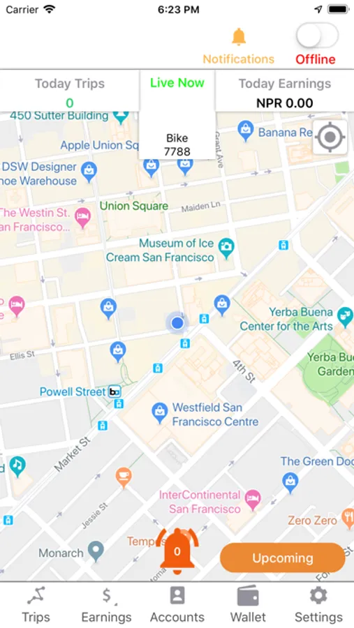 Live tracking for real-time location of the ride