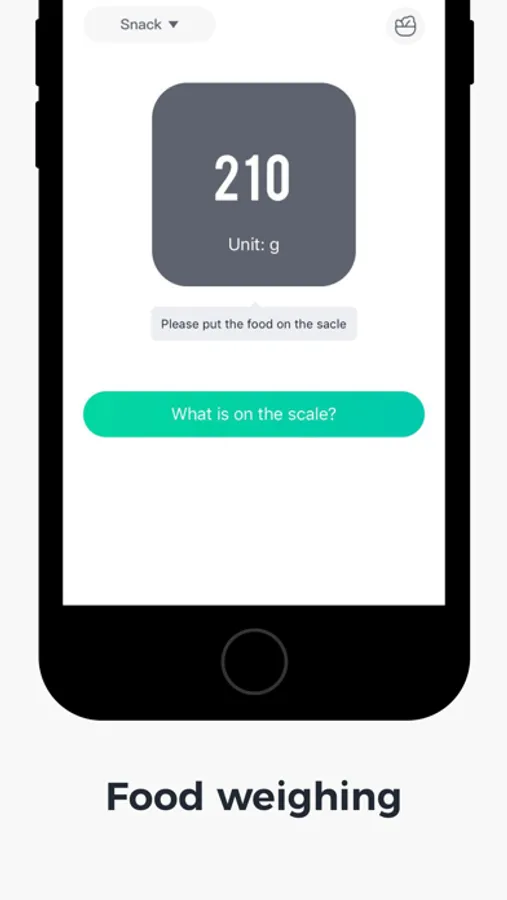 • On the weighing page, place the food on the surface of the scale, weigh the actual weight, perform a food search, and finally calculate the actual calories.