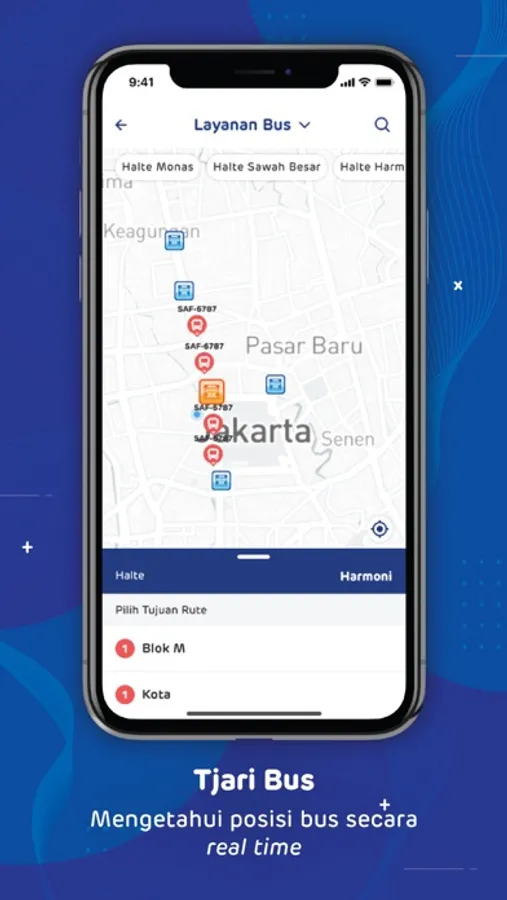 - Fitur mengetahui posisi bus dan waktu tunggu secara real time saat menunggu di halte keberangkatan