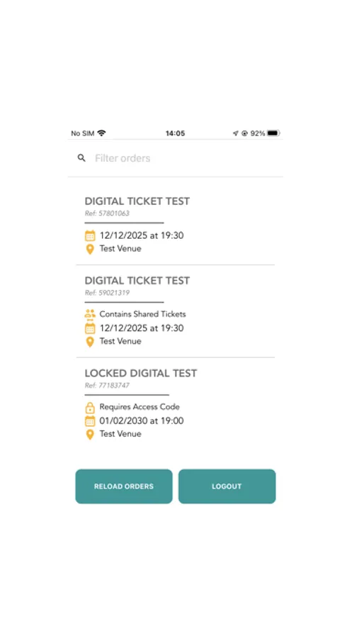 This app is for storing DIGITAL tickets only, it will NOT show e-ticket PDFs or other orders.