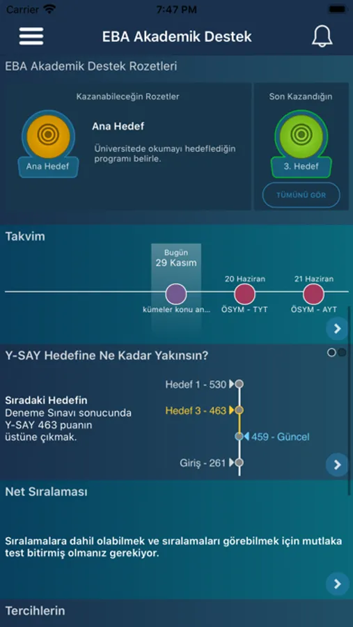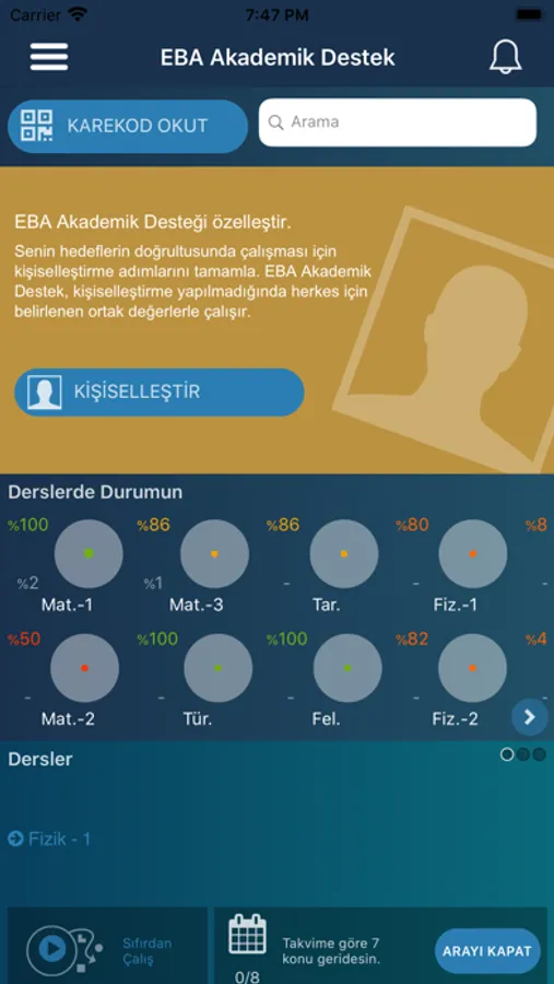 EBA Akademik Destek’ teki sınav performanslarını detaylarıyla ve kesintisiz takip etmeni, sana özel tekrar listelerine, eksiklerini hızla tamamlayacağın konu anlatım ve soru çözüm videolarına doğrudan ulaşarak zaman kazandırır.