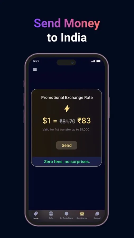 Let’s start with Abound's unparalleled exchange rates when sending money to India. Not only is Abound’s money remittance feature a fast, secure, and convenient way for NRIs in the USA to send money to their loved ones in India, it also offers the most competitive exchange rates and ZERO transfer fees around. Put simply, Abound is the most affordable option for remitting money to India.