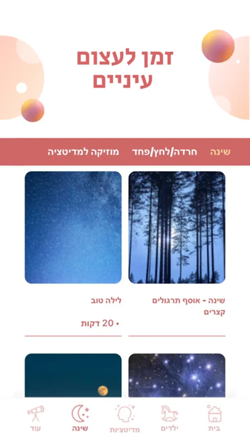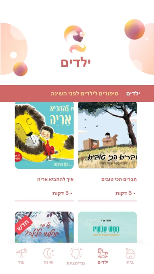 וישנה גם קטגוריה נפרדת של מדיטציה לילדים עם מדיטציות לילדים עם דמיון מודרך בגילאים 3-10.