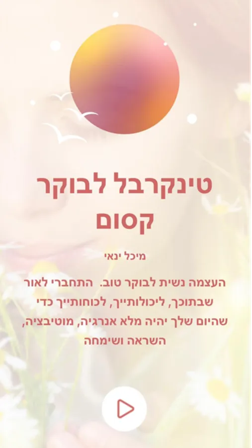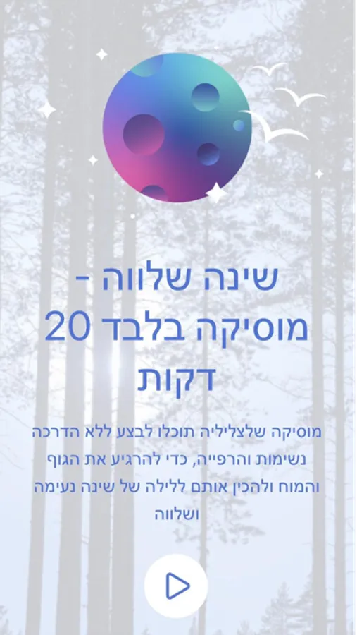 בפרופיל מופיעה אופציית ״מוסיקת רקע״ שמאפשרת לשמוע את המדיטציות עם/בלי מוסיקת רקע. ניתן לשנות את הבחירה בכל עת ולבצע שמירה של השינוי.