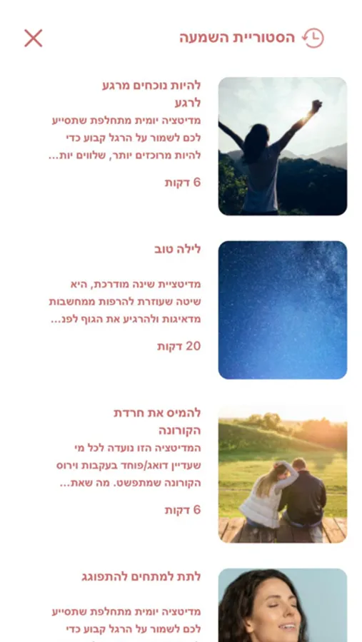 היא תימצא בקטגוריה ״הסטוריית האזנה״. תוכלו לשמור אותה במועדפים, או שתוכלו לעשות למדיטציה download , כדי להקשיב לה בטיסה או בכל זמן אחר שבו רשת אינטרנט לא תהיה זמינה עבורכם.