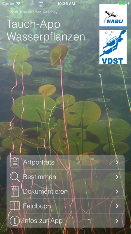 Die Tauch-App Wasserpflanzen wurde für das NABU/VDST-Projekt Tauchen für den Naturschutz entwickelt, um den Zustand von Tauchseen zu erfassen. Nach einer vorherigen Schulung zu typischen Wasserpflanzen der Region können diese Gruppen an Tauchgängen zur Kartierung teilnehmen. Sie können dadurch Entwicklungen eines Sees dokumentieren. Sporttaucher werden hiermit befähigt, selbst über den Zustand ihres Sees zu berichten.